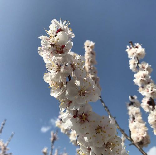アンズの花は場所により満開に。